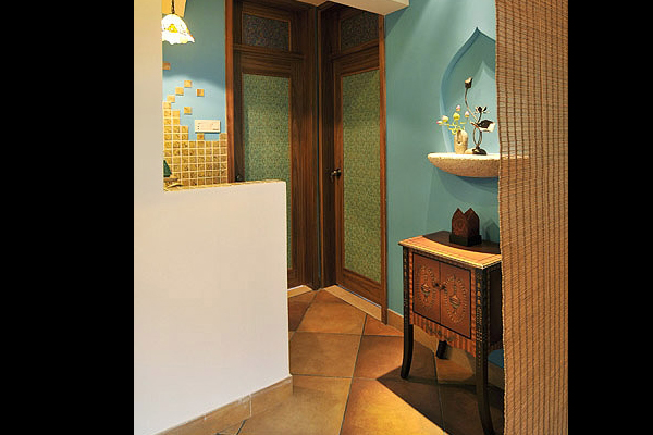 此案例中,清新自然的原始風格中,透著難以抑制的熱烈絢爛!同時佛教元素的應用和巧妙的細節裝飾顯得更具有神秘感!