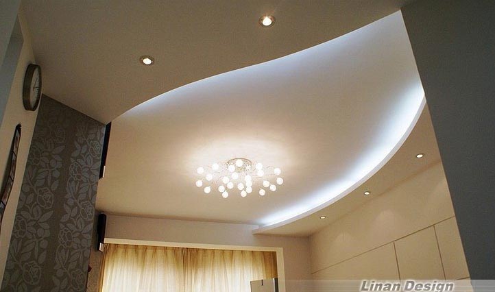 簡約設計少裝飾,但重造型,以及整體空間營造的那種形式感!此案例最有看點莫過于頂上那依據房型而打造的趣味造型!這段造型既體量化了空間,又無意間為房子的功能布局做了分割!更有秩序和空間感!