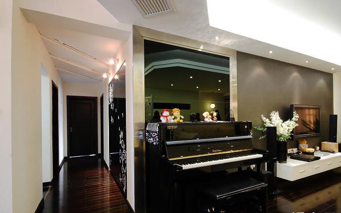 同時,如同很多人所做的,在造型中隱藏空調出風口,也可以免去外掛空調的麻煩。這恰恰是簡約設計功能性的設計需求,米黃的溫馨和黑色鋼琴的格調感,讓整個空間富有品位!浪漫的花格屏風以及彎月的造型頂也給這個本就優雅的空間增加了更多藝術美感!